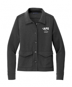 A structured double-knit style with a luxuriously soft hand, this versatile woman’s jacket adds a touch of utilitarian flair with a full button-front closure. The jacket can be cinched with a hidden waist drawcord for a more form-fitting look. 8-ounce, 76/22/2 polyester/rayon/spandex double-knit.